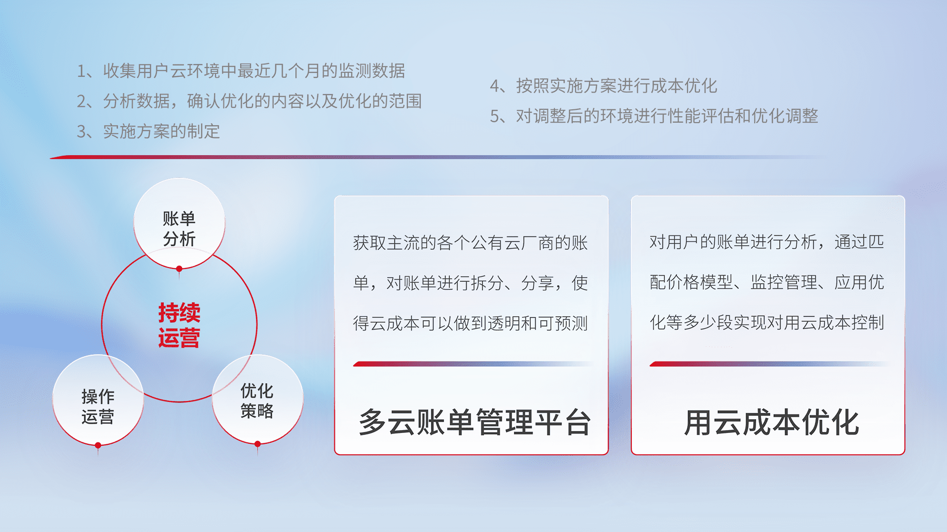 运用智能化工具分析云资源,,,,提供日常费用可视化工具,,,,自动账单拆分,,,,成本优化云上费用,,,,降本增效。。。。